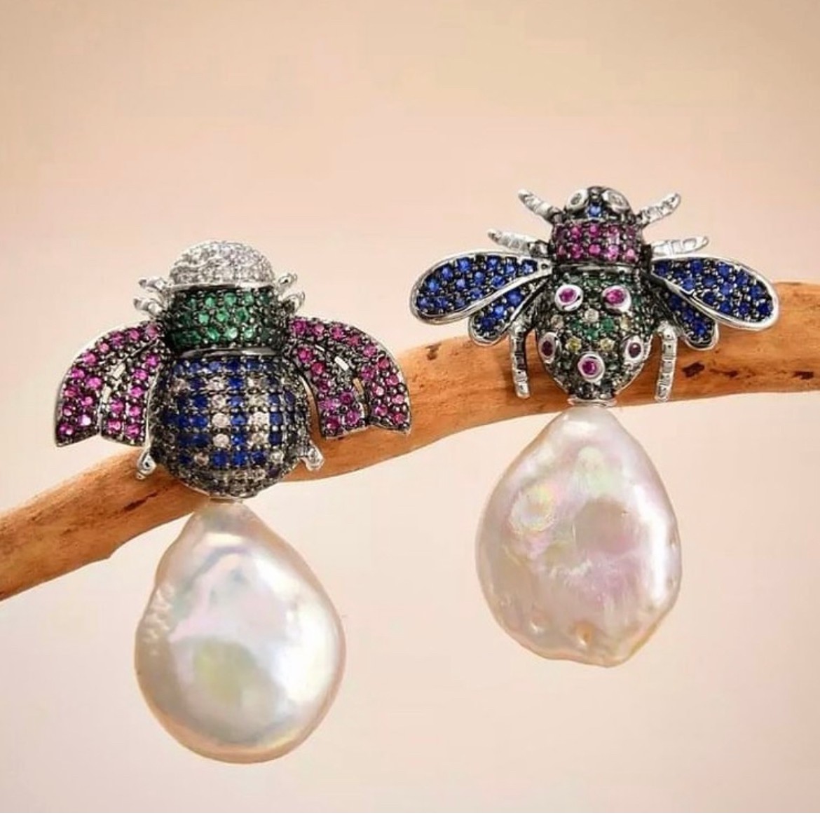 Material: prata tibetana, banhado em ouro 18k, pérolas cultivadas em água doce, pedras em zirconias.