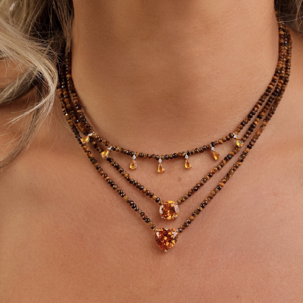 Colar cristais olho de tigre com 7 gotas Aperol