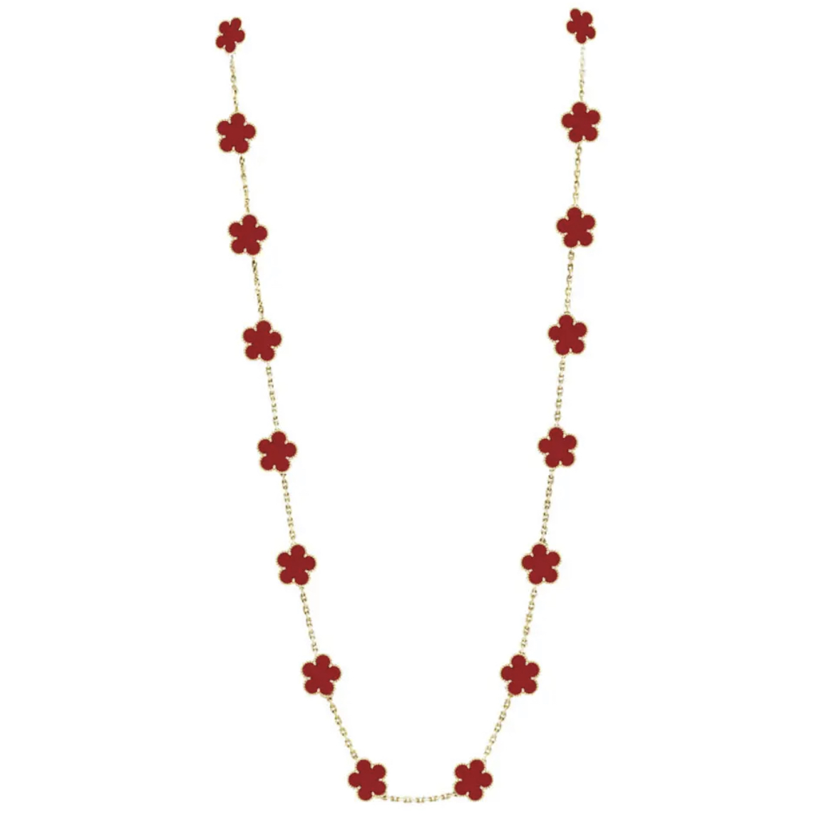 COLAR FLOR TREVO VERMELHO FOLHEADO A OURO