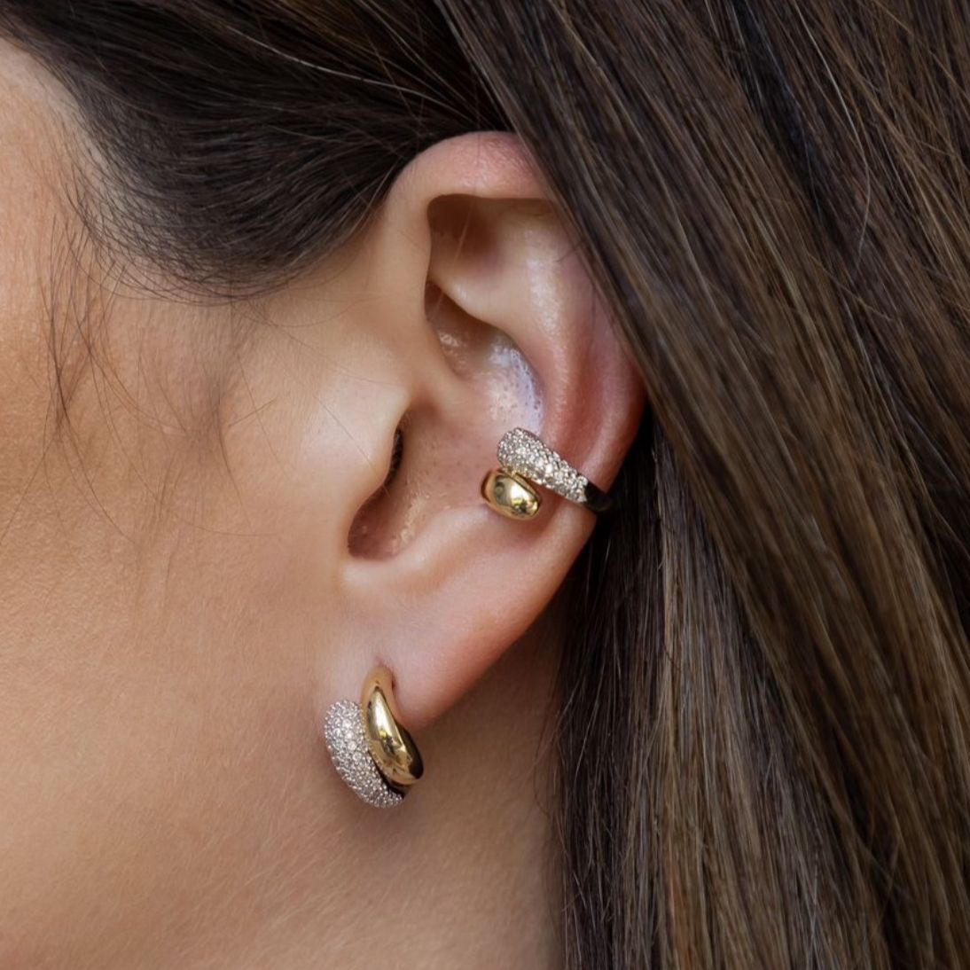 CONJUNTO BRINCO ARGOLA DOURADA COM RÓDIO E PIERCING
